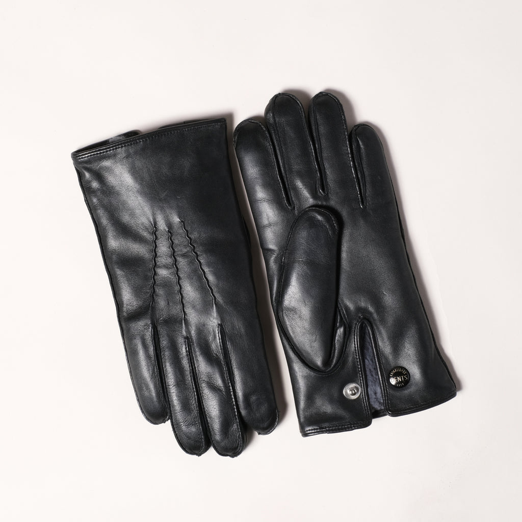 Black Fur Lined Leather Gloves by Dents