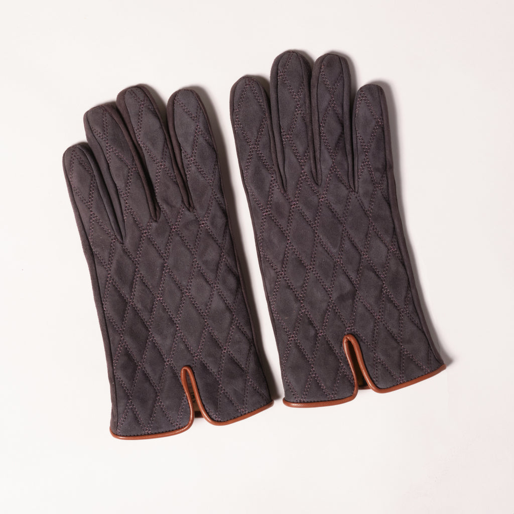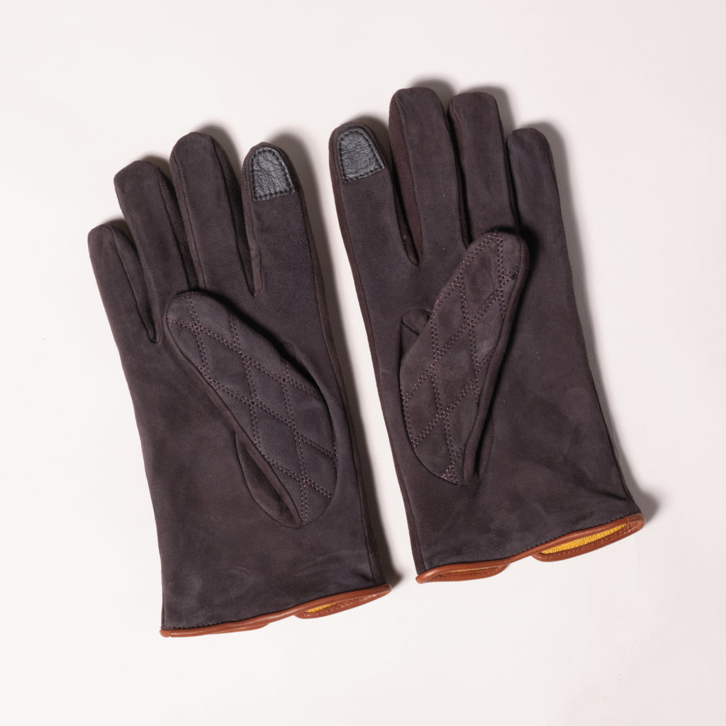 Espresso Quilted Lamb Suede Gloves by Martin Dingman