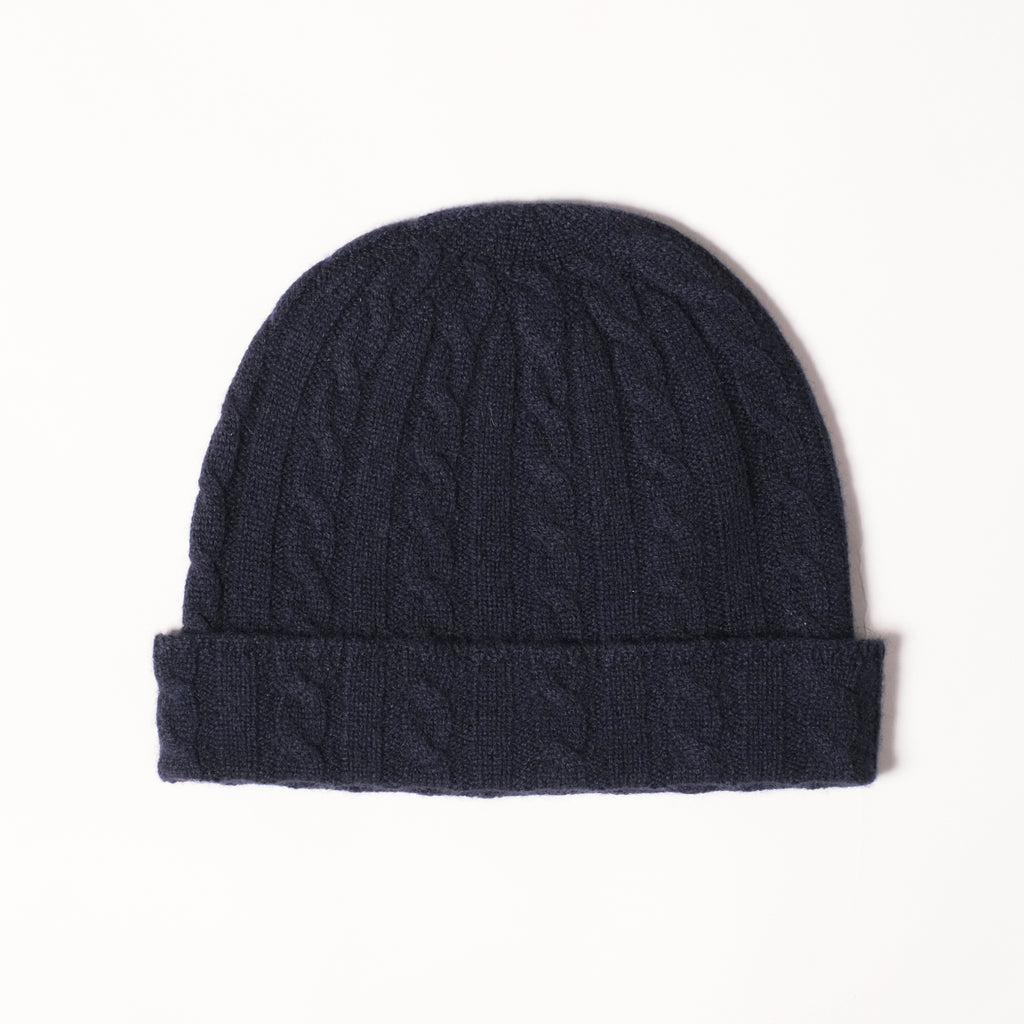 Navy Cable Knit Cashmere Beanie Hat by Alan Paine