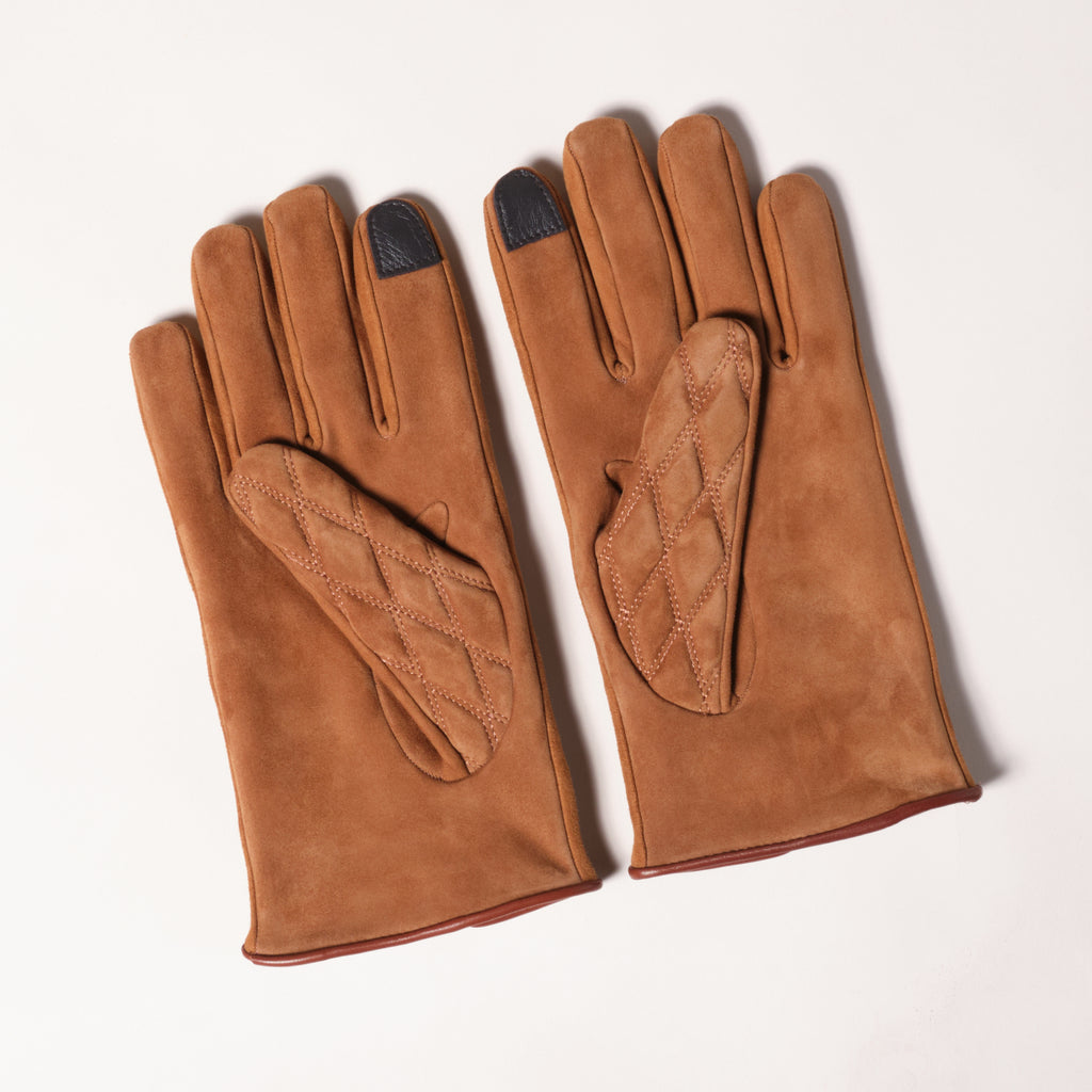 Tobacco Quilted Lamb Suede Gloves by Martin Dingman