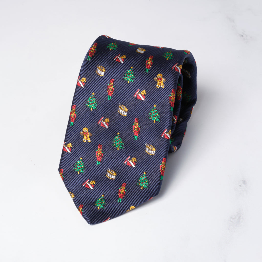 Navy Christmas Toys Silk Tie by Robert Jensen