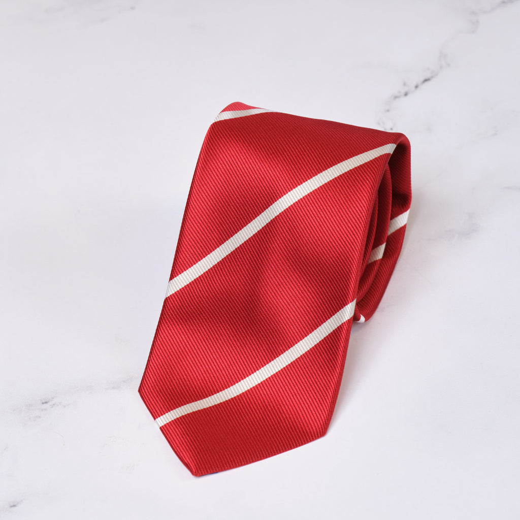 Scarlet & Ecru Repp Stripe Silk Tie by Robert Jensen