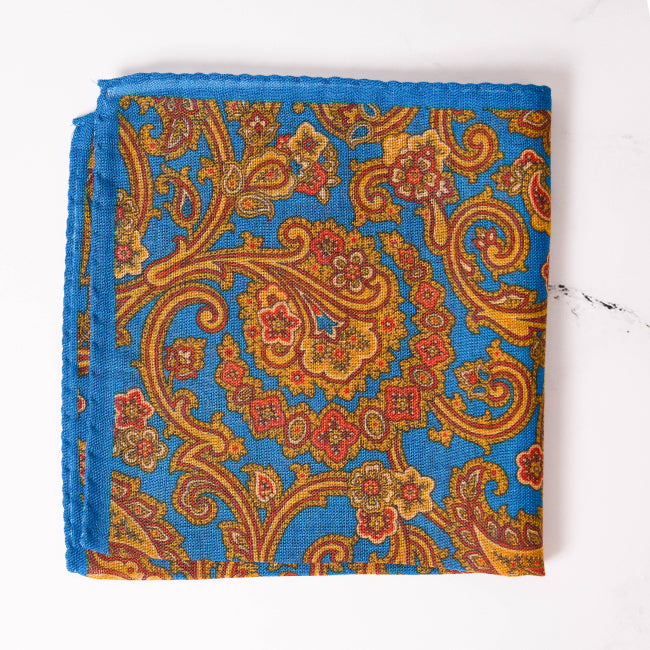 Cobalt Paisley Print Pocket Square by Harrison Limited