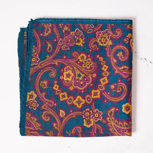 Petrol Floral Paisley Print Pocket Square by Harrison Limited