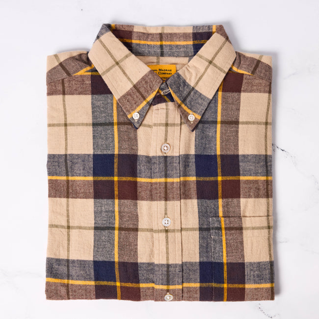 Brown, Green & Tan Plaid Madras Sport Shirt by OMTC