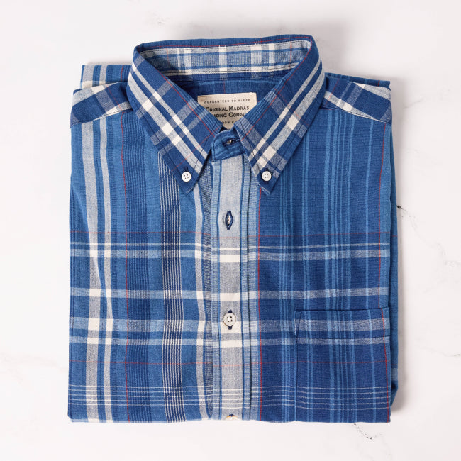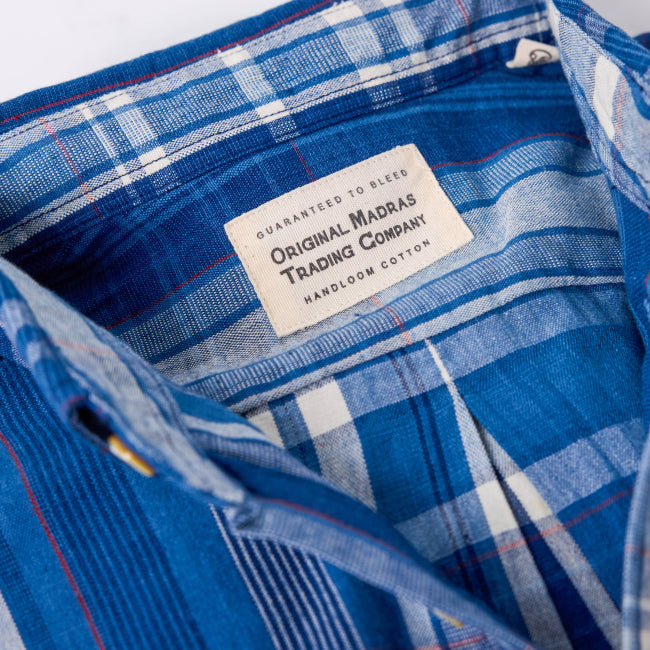 Navy, Blue & Red Plaid Madras Sport Shirt by OMTC