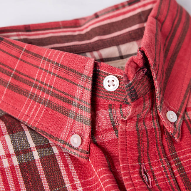 Red, Brown & White Plaid Madras Sport Shirt by OMTC