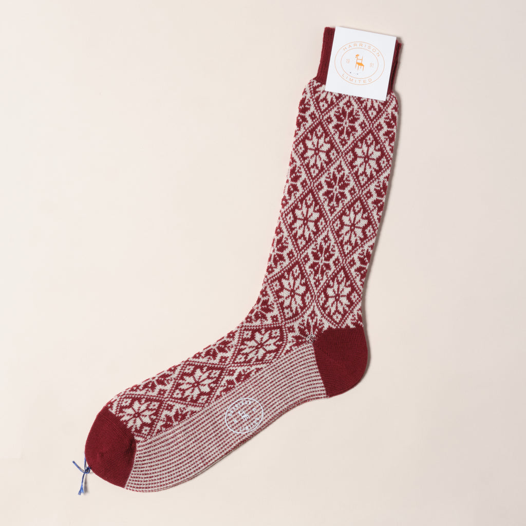 Crimson & Cream Snowflake Sock by Harrison Limited