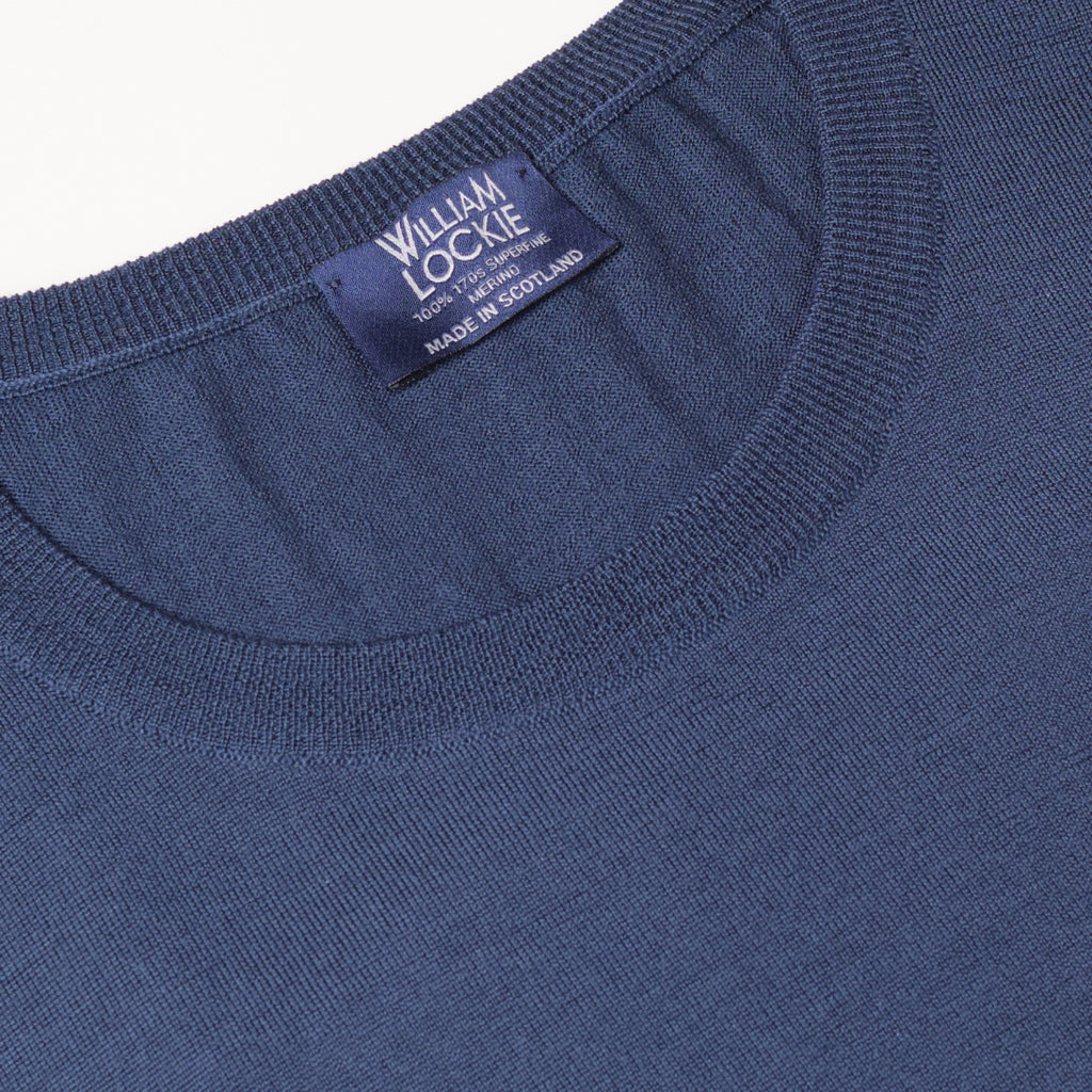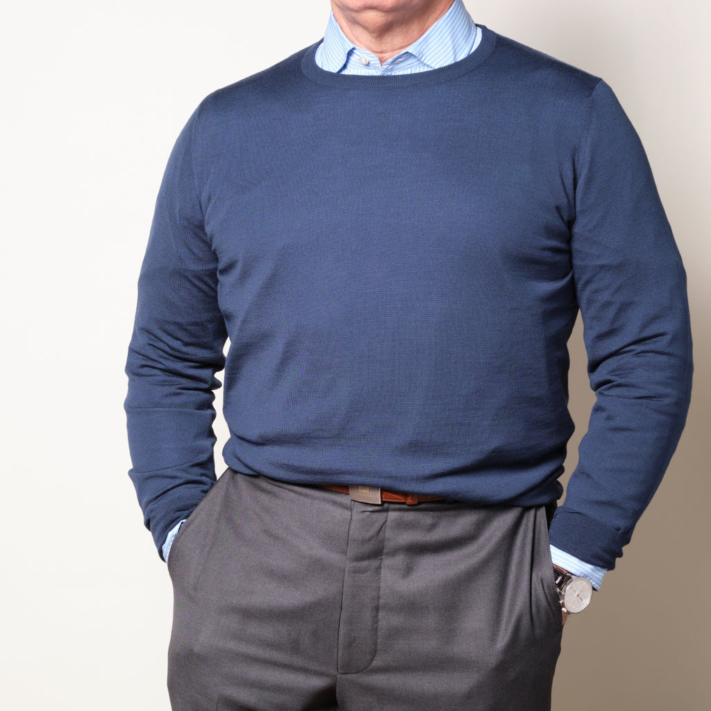 Deep Navy Superfine Merino Crew Neck Sweater by Wm. Lockie