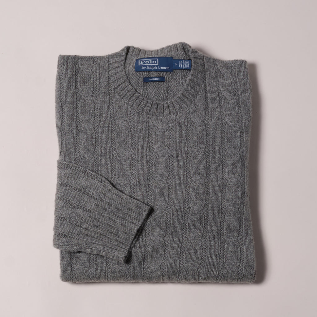 Fawn Grey Cable-Knit Cashmere Sweater by Ralph Lauren
