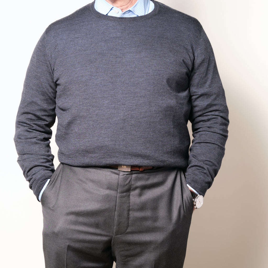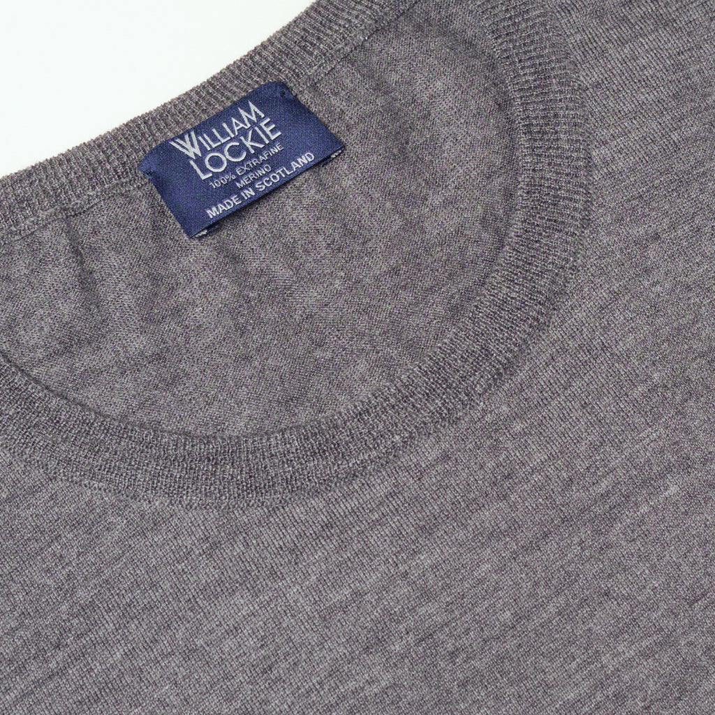 Oxford Grey Superfine Merino Crew Neck Sweater by Wm. Lockie