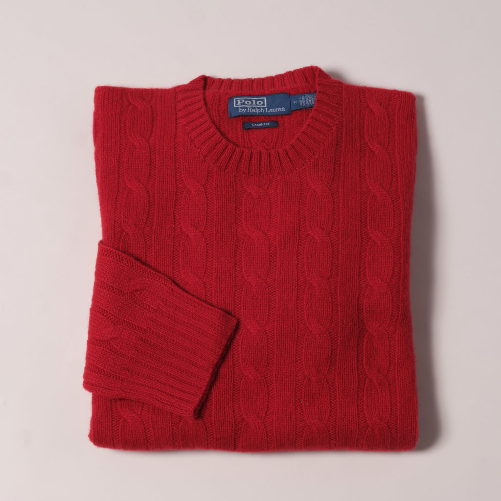 Park Avenue Red Cable-Knit Cashmere Sweater by Ralph Lauren