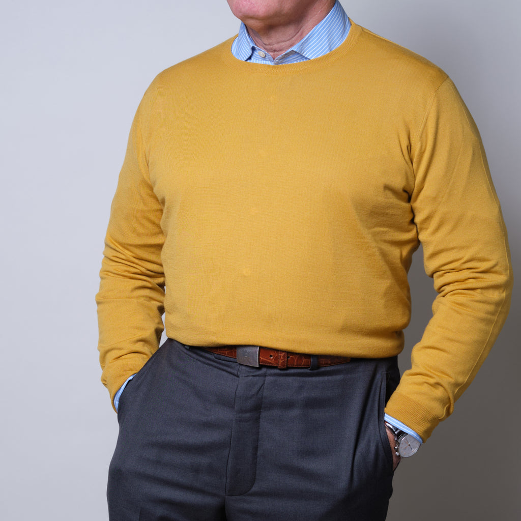 Saffron Superfine Merino Crew Neck Sweater by Wm. Lockie
