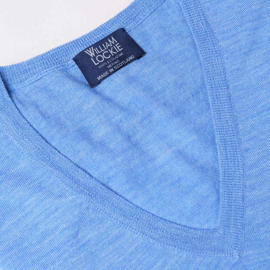 Sky Blue Superfine Merino Vee Neck Sweater by Wm. Lockie