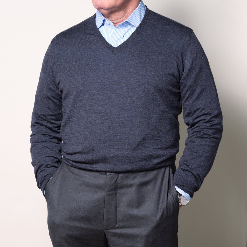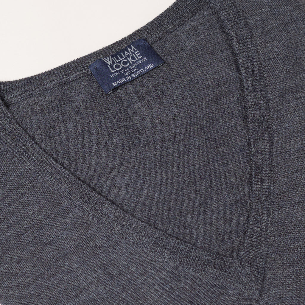 Smoke Superfine Merino Vee Neck Sweater by Wm. Lockie