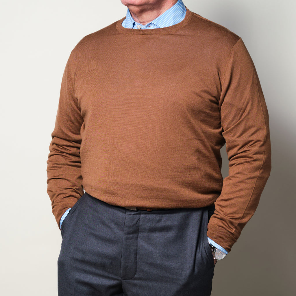 Teak Superfine Merino Crew Neck Sweater by Wm. Lockie
