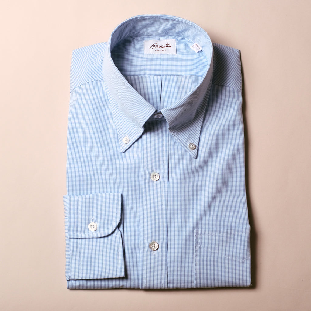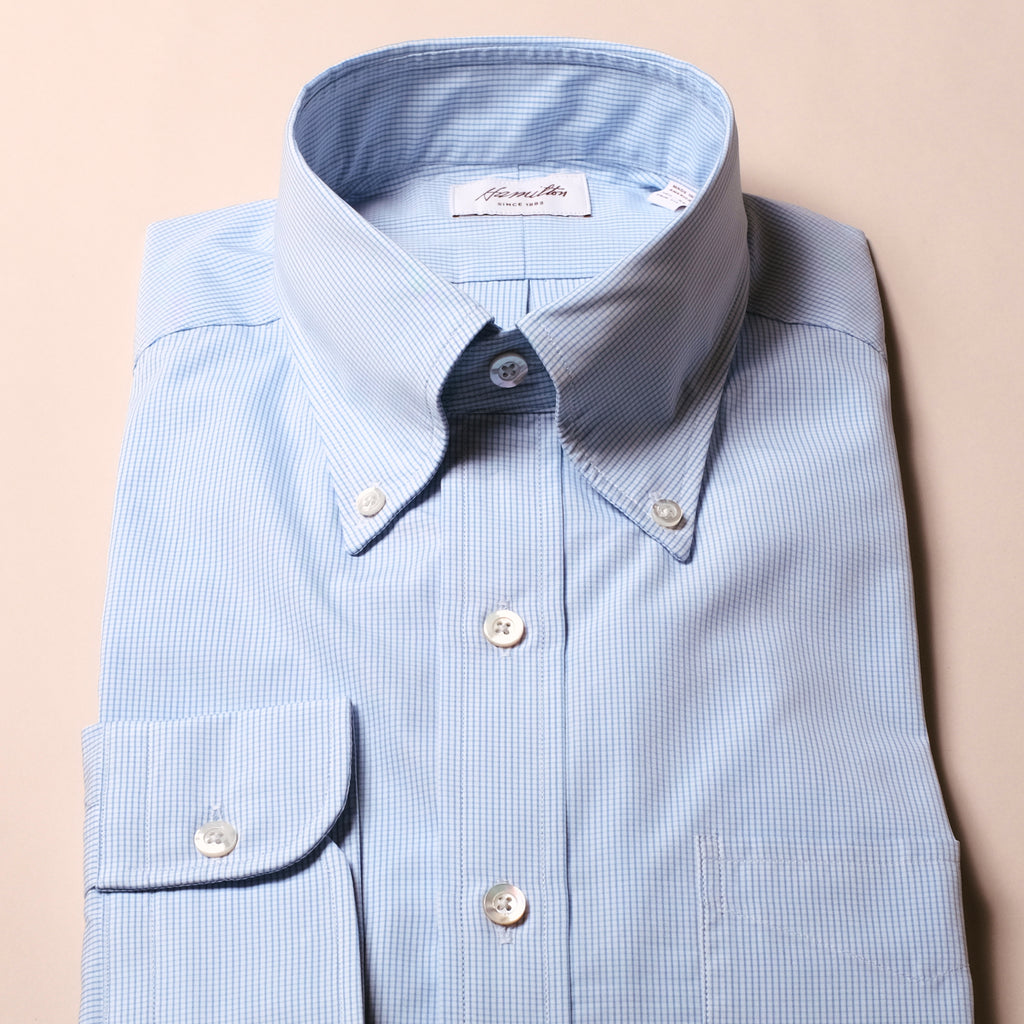 Hamilton Blue Graph Check Poplin Dress Shirt