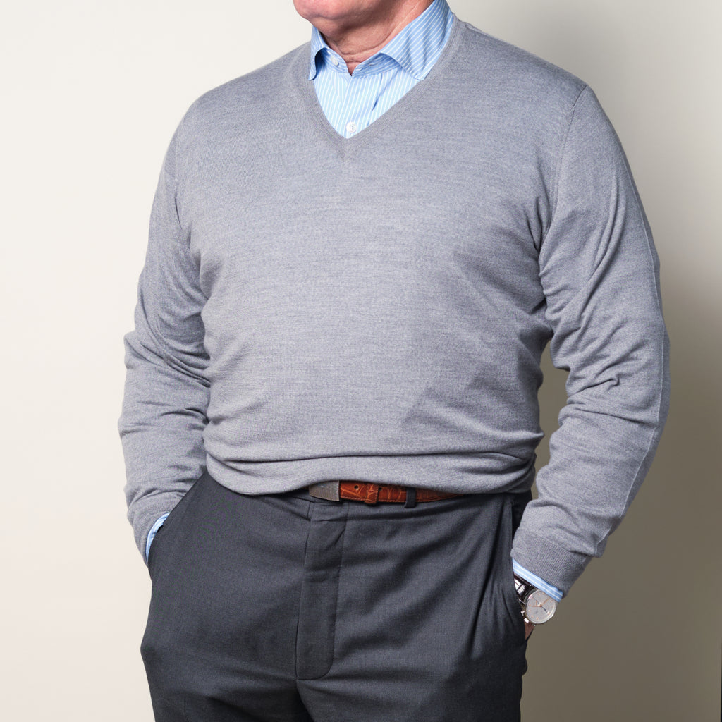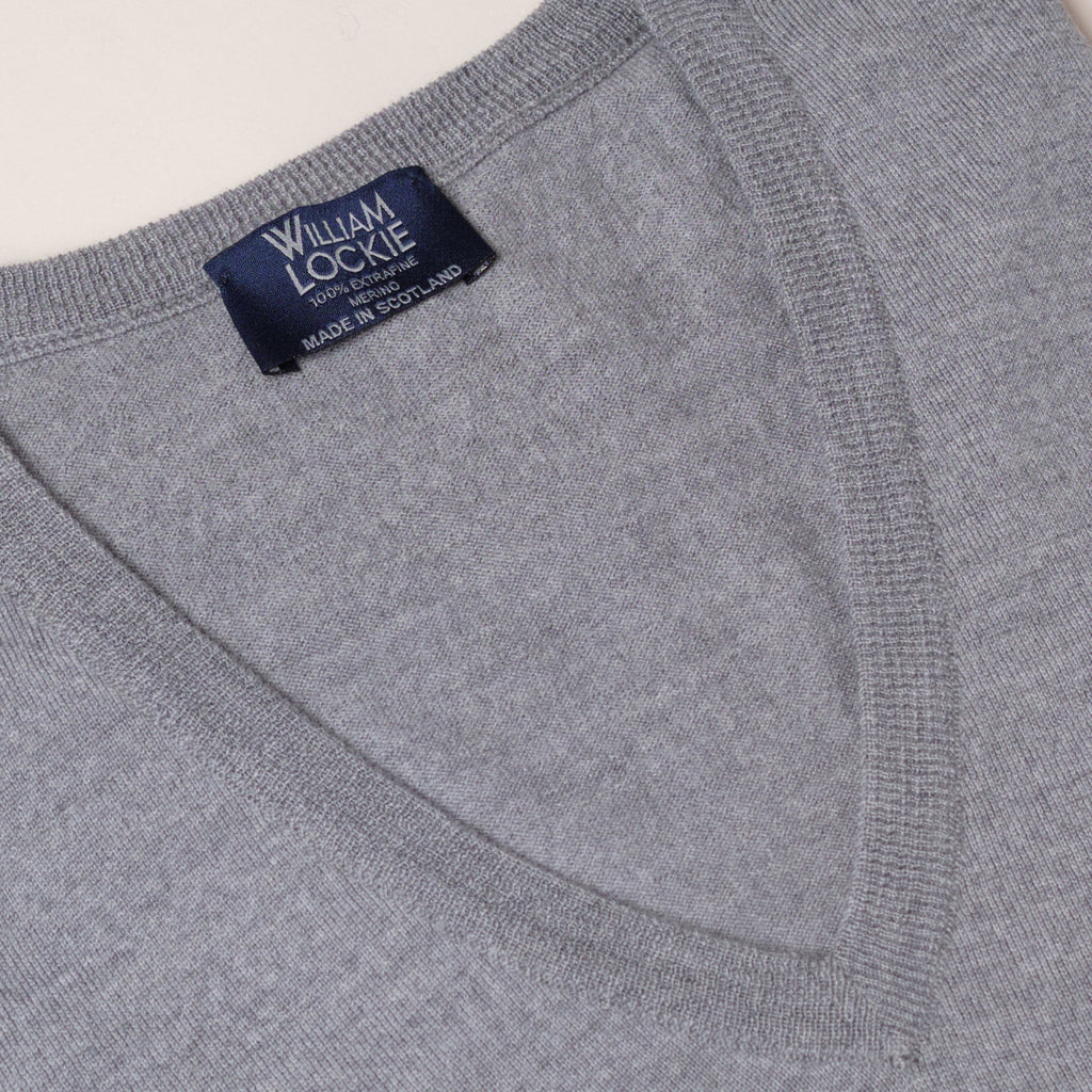 Pewter Superfine Merino Vee Neck Sweater by Wm. Lockie
