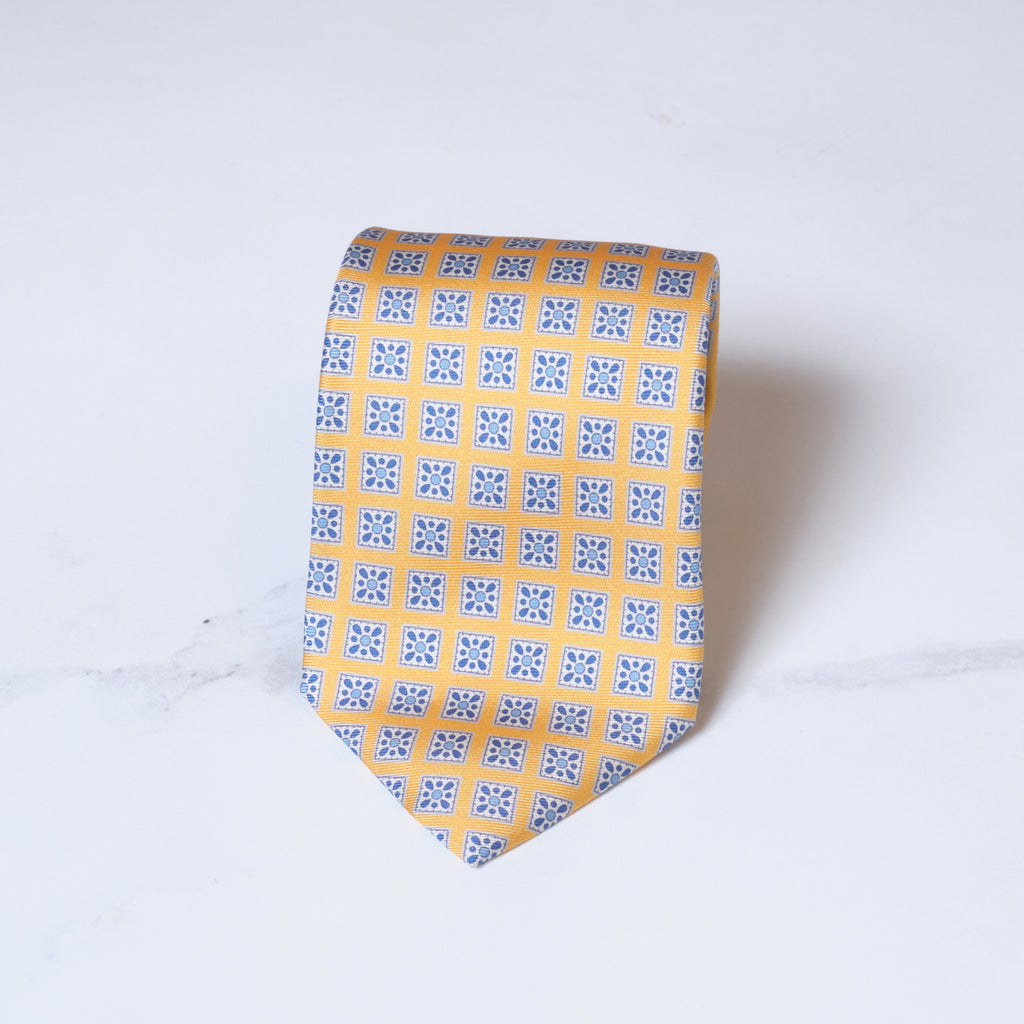 Yellow Neat Printed Silk Tie by Robert Jensen